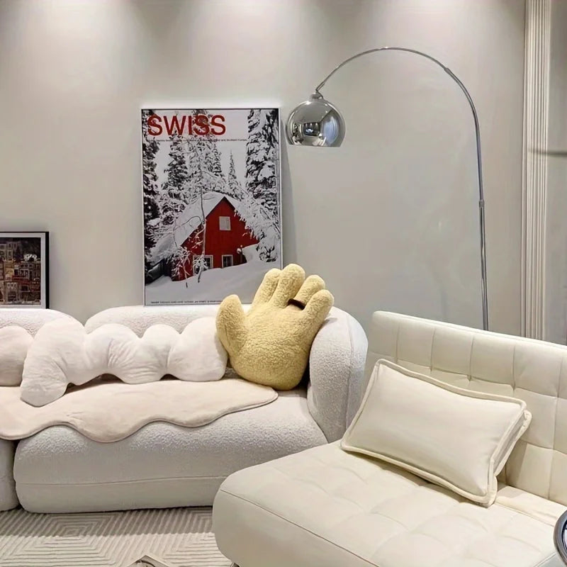 This plush throw pillow features a unique hand-shaped design, adding a playful and artistic touch to any space. Made with ultra-soft Sherpa fabric, it provides both comfort and visual appeal, making it a perfect accent for sofas, beds, or lounge areas.